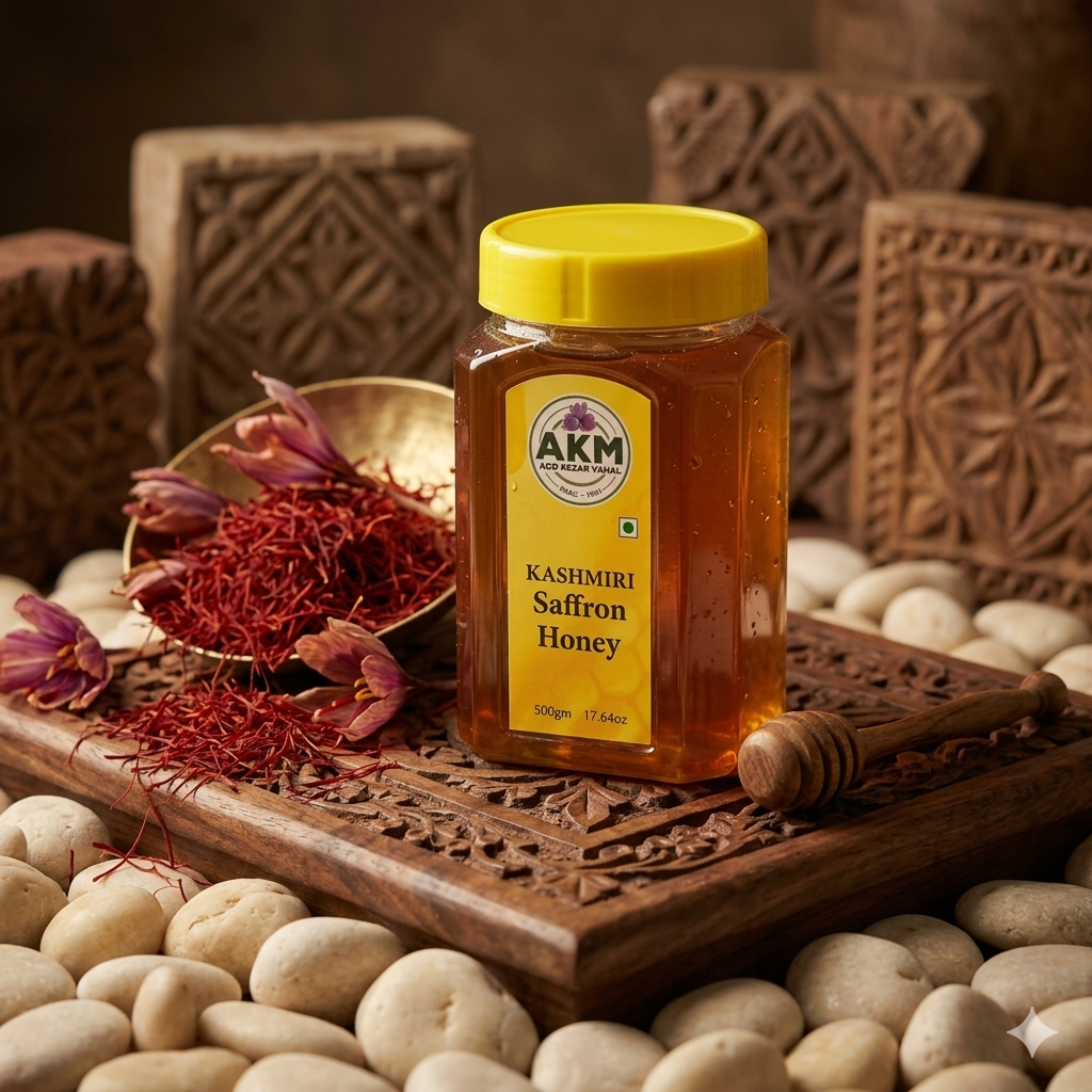 A premium blend of raw honey infused with pure Kashmiri saffron—crafted for taste, wellness, and a naturally luxurious experience. Kashmiri Saffron Honey Online | Pure Honey Infused with Saffron.
